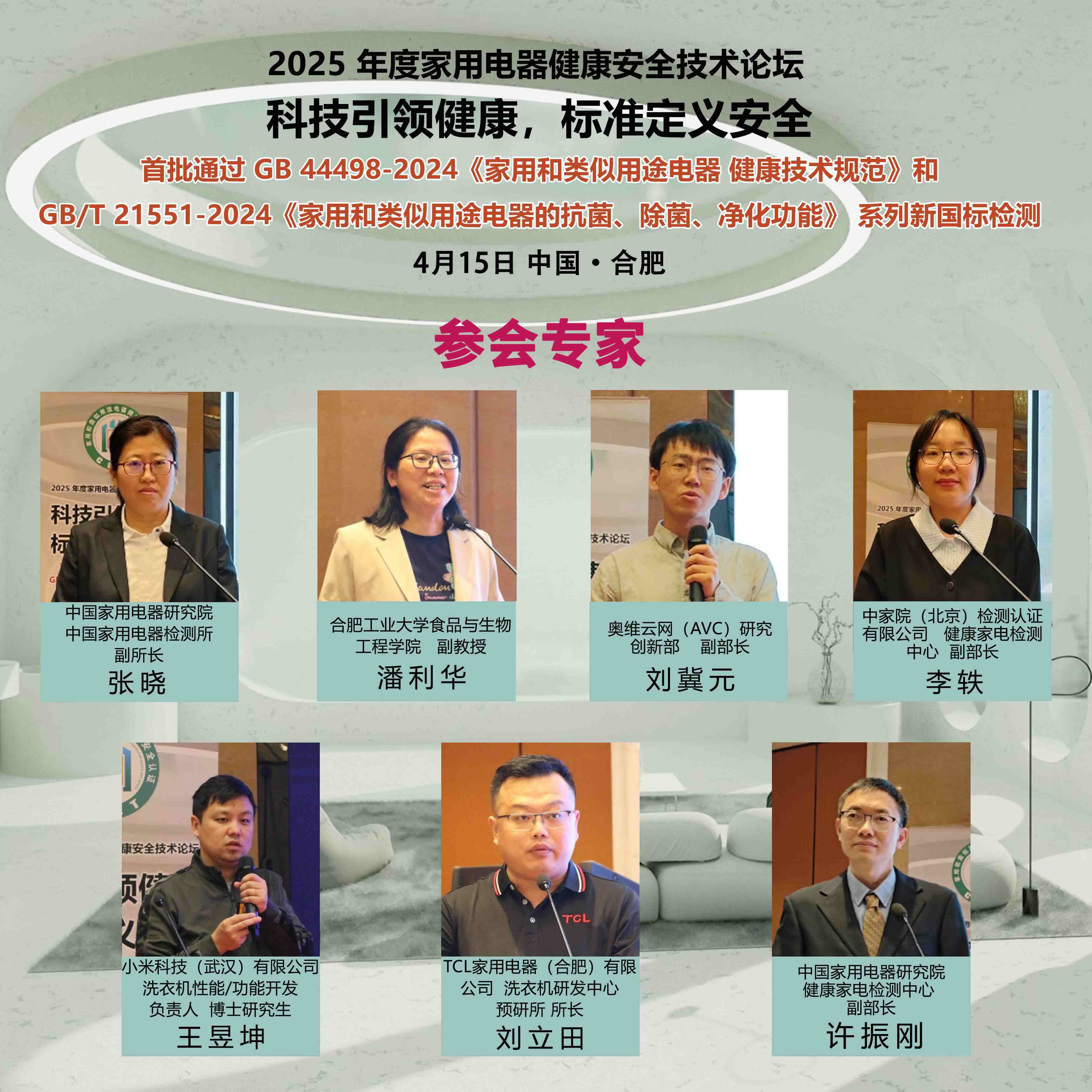 2025年4月15日下午,由中家院(北京)检测认证有限公司主办的“2025年度家用电器健康安全技术论坛”在安徽合肥举行。