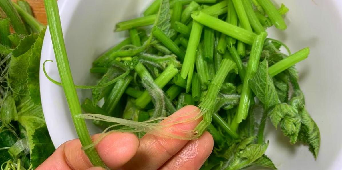 南瓜苗的茎上有很多软刺,看似不起眼,但如果不处理好,吃起来会影响口感。