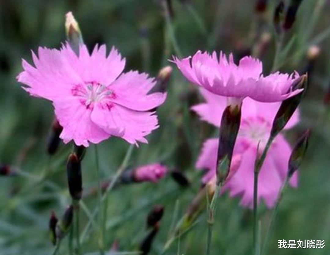 这里再对比几种和石竹类似的绿植。比如瞿麦,瞿麦的花朵也很漂亮,但是它比较喜欢湿润的环境,对水分的要求比石竹高。在华北地区,瞿麦如果在路边种植,遇到干旱季节就需要经常浇水,不然很容易枯萎。而石竹相对来说就比较耐旱。