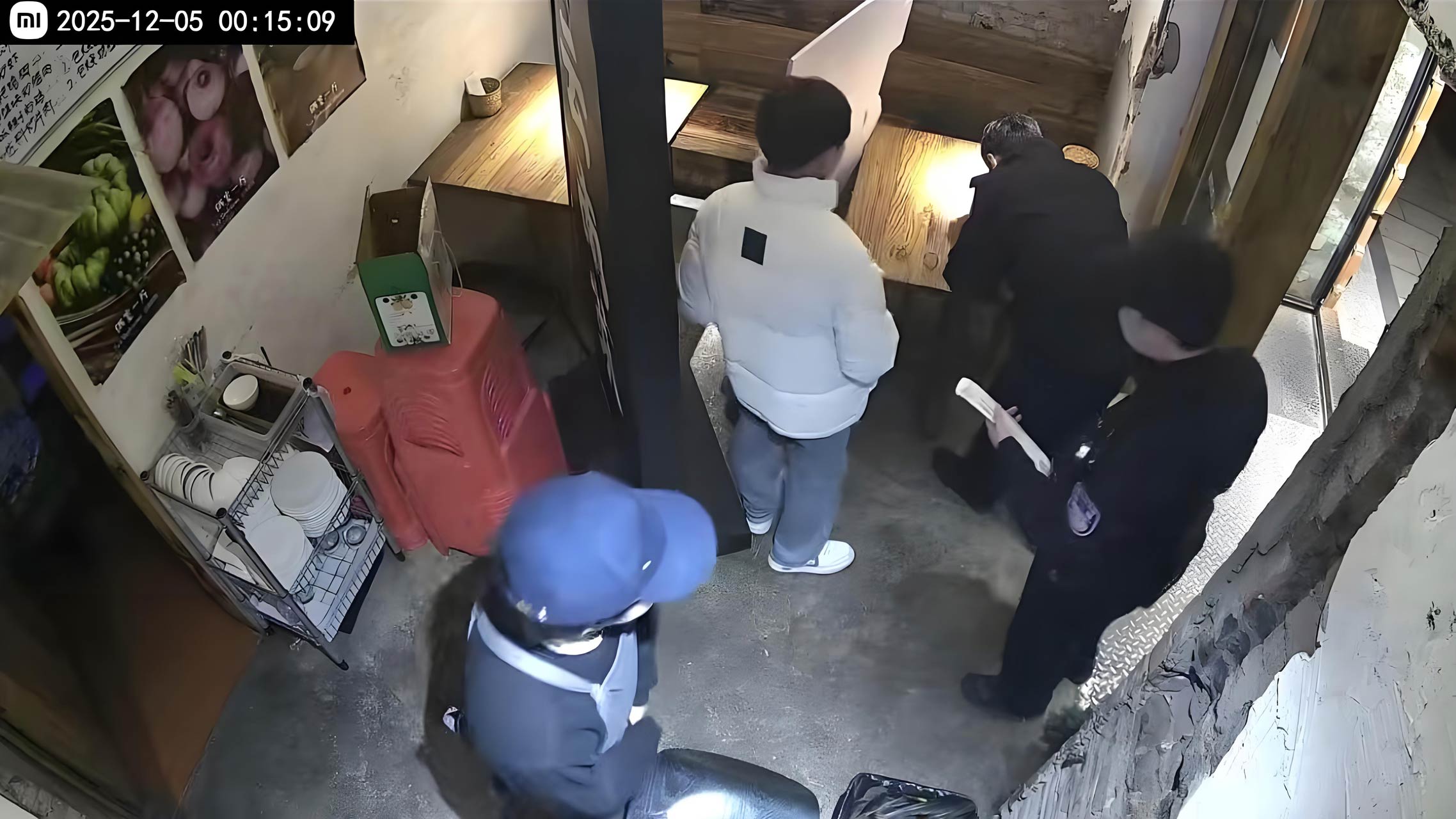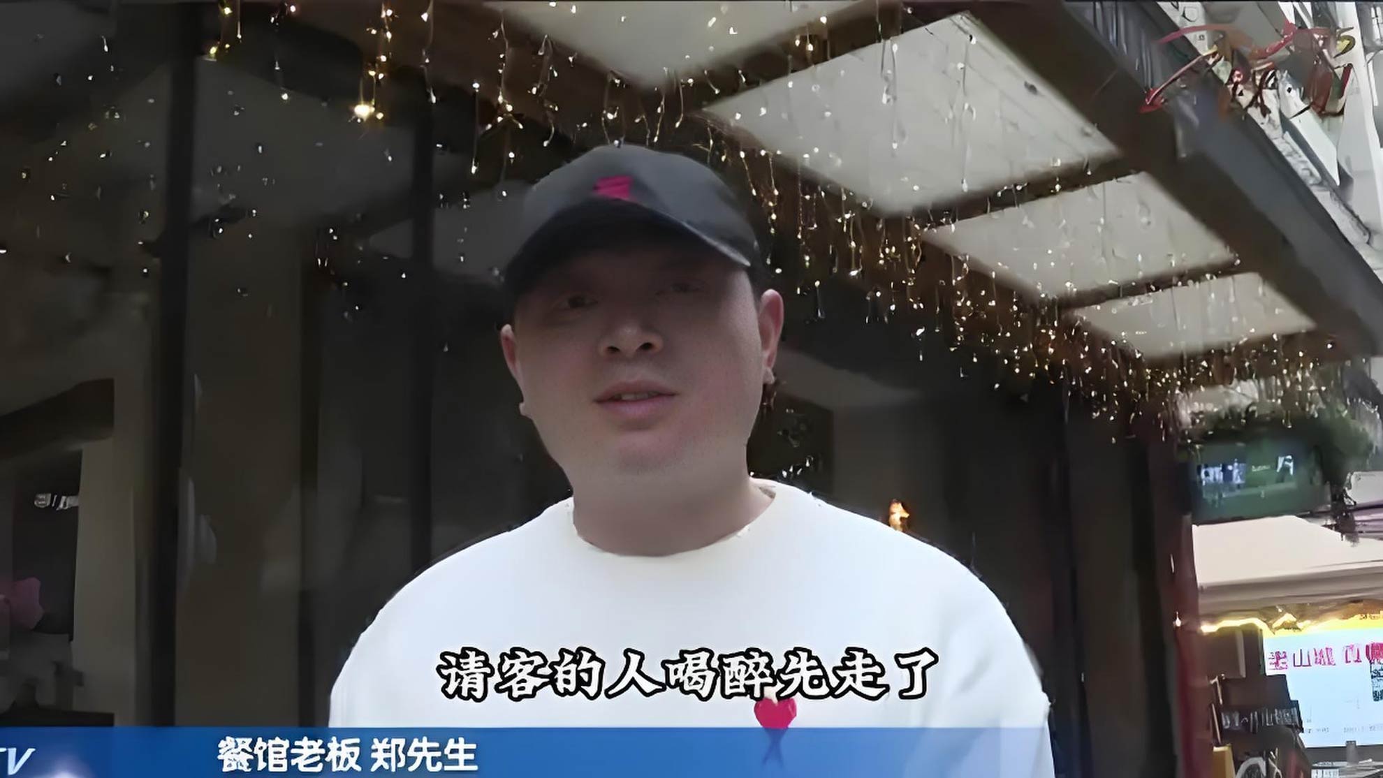 12月4日下午,这家餐馆接到预定电话,随后10位客人前来就餐,拼了两张大桌。这群人从下午4点一直用餐到深夜,期间还在店外购买了零食和白酒。当晚10点左右,有人开始陆续离开。最终,只剩下身穿白色羽绒服的张先生一人面对1262元的账单。