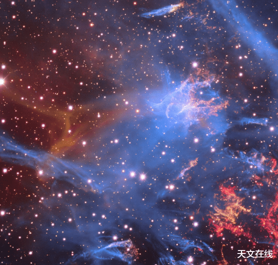 这一股翻腾的尘埃丝线和气体触须延伸跨越100光年,像是脆弱的蕾丝一样,它是船帆座超新星遗迹,这是大约11,000年前爆炸的一颗恒星散落的灰烬。