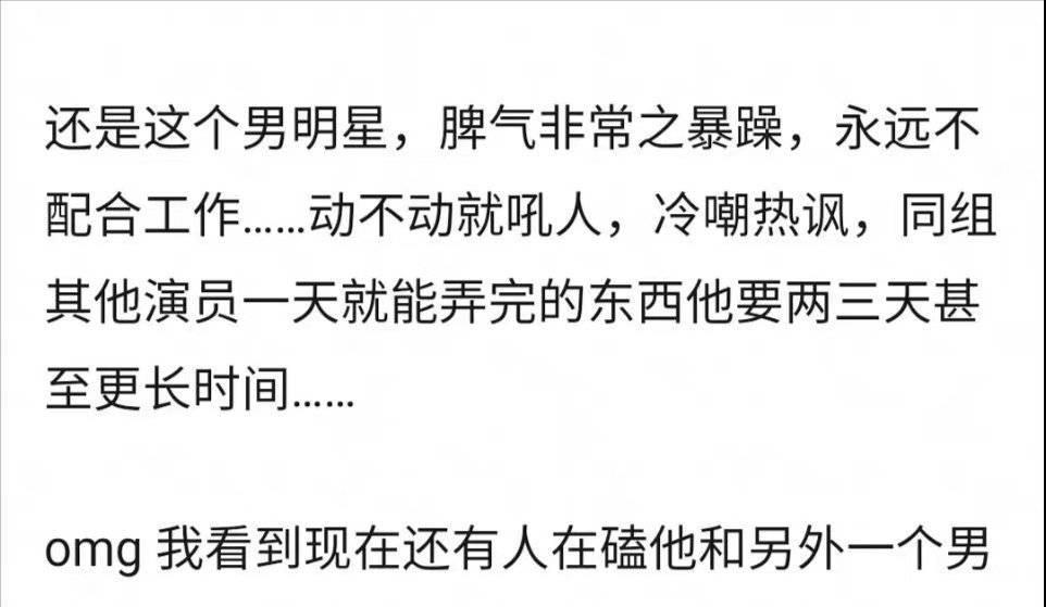 这个工作人员虽然没有直接曝光这个演员的名字,但是给出了一些线索: