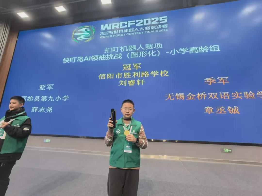 学校选派15名优秀选手组成精锐之师,出征郑州锦标赛。在激烈的竞争中,胜利学子们沉着应战、发挥出色,一举斩获9项省级一等奖,彰显集团在机器人教育领域的深厚底蕴!更令人振奋的是,5名选手凭借优异表现强势晋级全国总决赛,在全国赛场上,刘睿轩同学力压群雄、脱颖而出,勇夺无锡全国总决赛“扣叮机器人”赛项全国总冠军;李梵霖同学亦以稳健发挥摘得“ICode”赛项图形化小高组河南省亚军,充分展现了信阳市胜利路学校学子全面发展的科技竞争力!