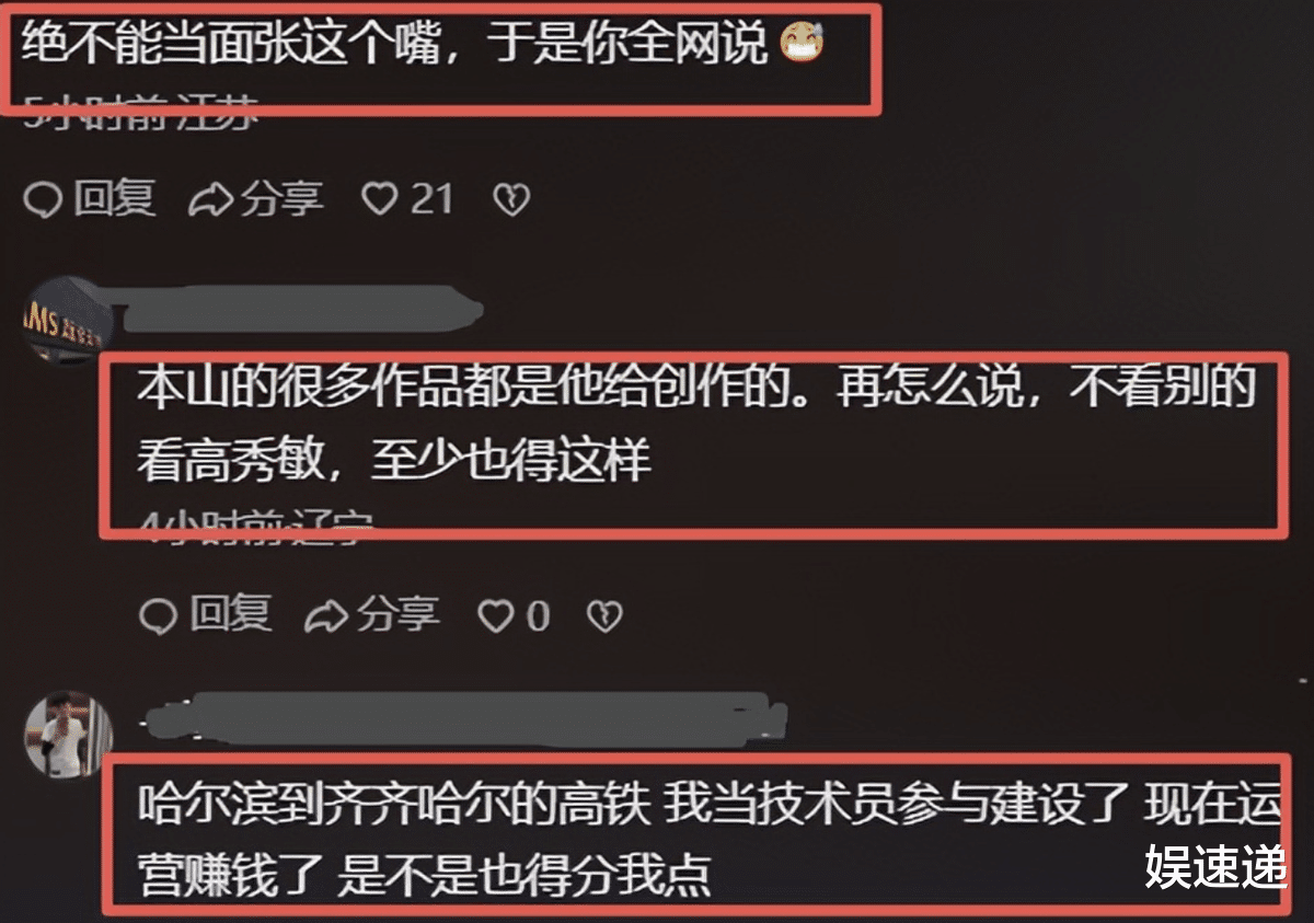 有看不过的粉丝在评论区留言,怼他要直立行走别道德绑架。眼尖的老何立马截屏了这条评论,并再次强调不会张嘴、绝不添麻烦;