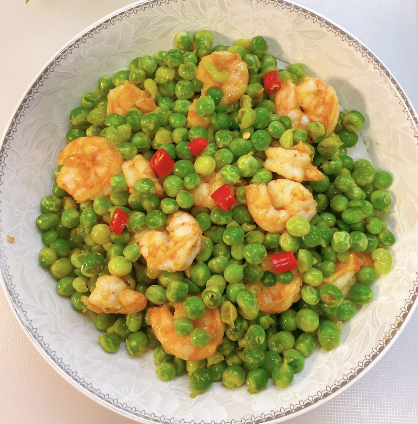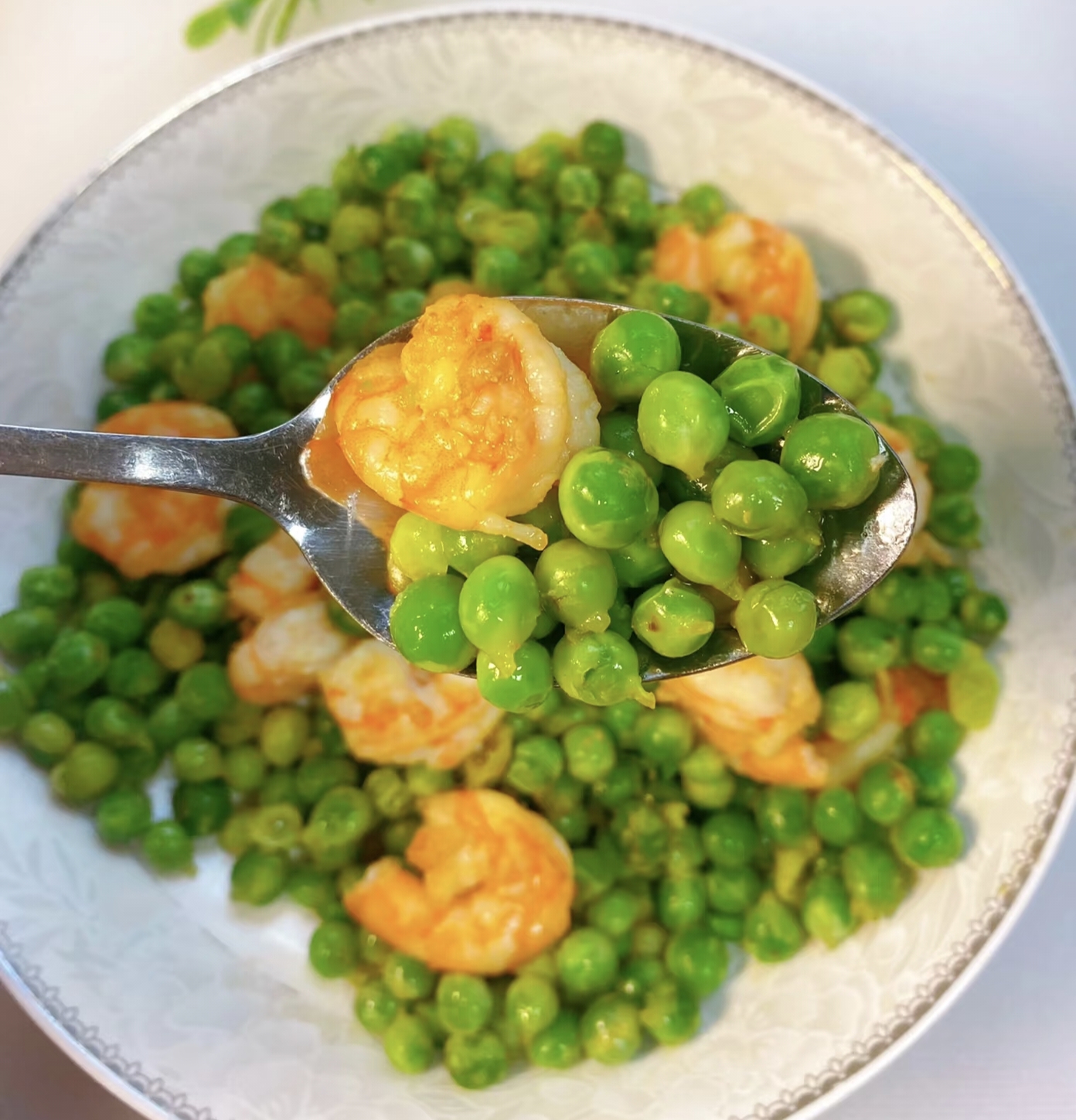刚装盘的豌豆炒虾仁还冒着热气,虾仁泛着诱人的光泽,豌豆像绿宝石般点缀其间。舀一勺浇在刚出锅的米饭上,虾仁的鲜、豌豆的甜、蒜末的香在嘴里炸开,连吃三碗都不过瘾!现在你学会了吗?赶紧打开冰箱,让沉睡的虾仁和豌豆来场完美邂逅吧!记得多煮点米饭,这道菜,真的会让人吃到停不下来啊!