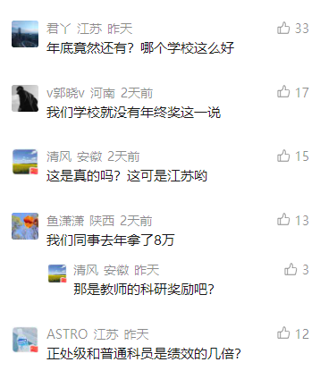 更有网友表示:年终奖是啥玩意,从来没拿过,别说年终奖了,什么13薪之类的,老板从来闭口不谈。自打公司搞了绩效开始卡成本以后,就差自己倒贴上班了。