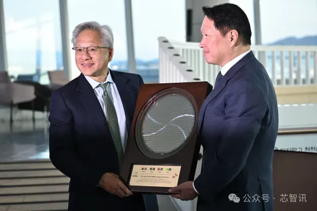 △英伟达CEO黄仁勋与SK海力士母公司SK集团董事长崔泰源