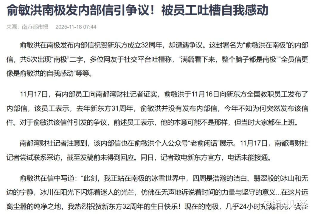 正当大家发愁找不到频道跟俞老板共振的时候,俞敏洪又上了强度——
