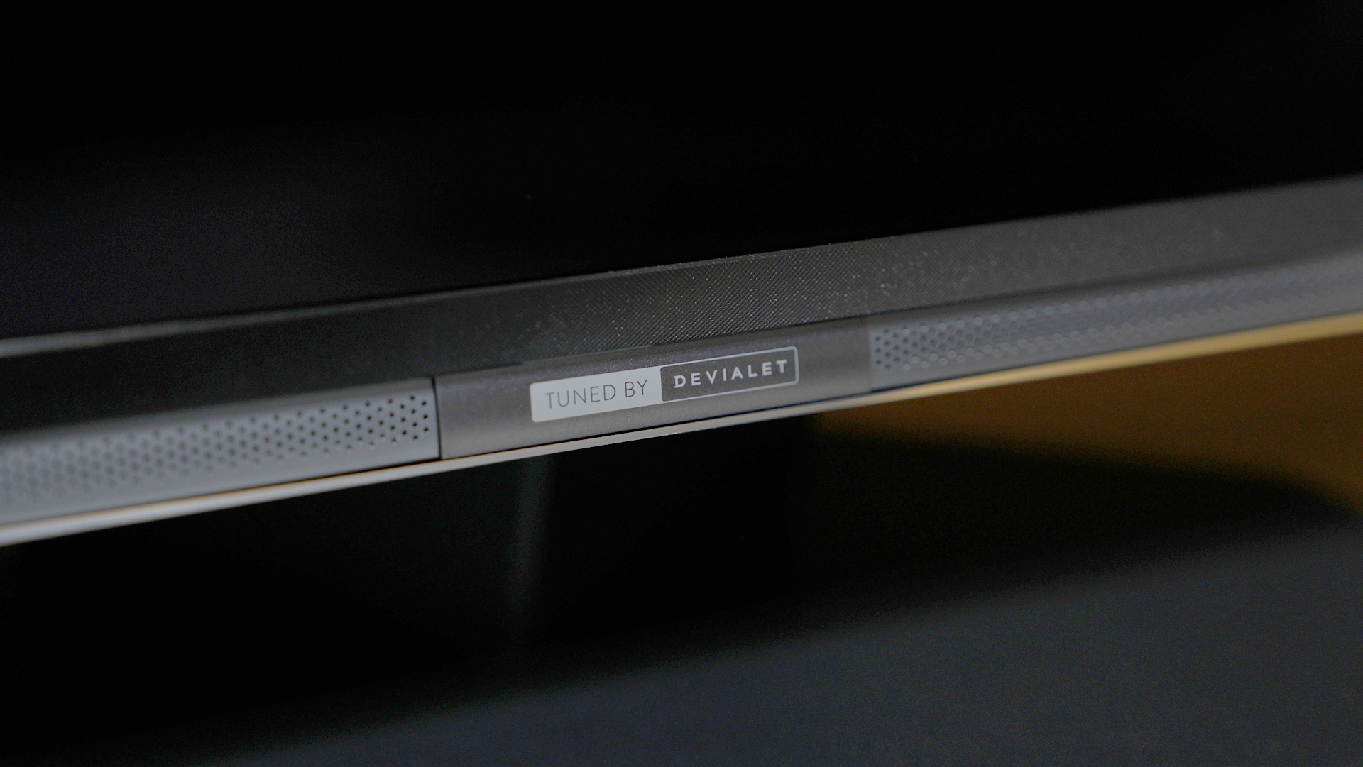 中间标识是知名音响品牌帝瓦雷LOGO,底栏有金属镂空网罩带前置扬声器,造型精致,符合旗舰定位。
