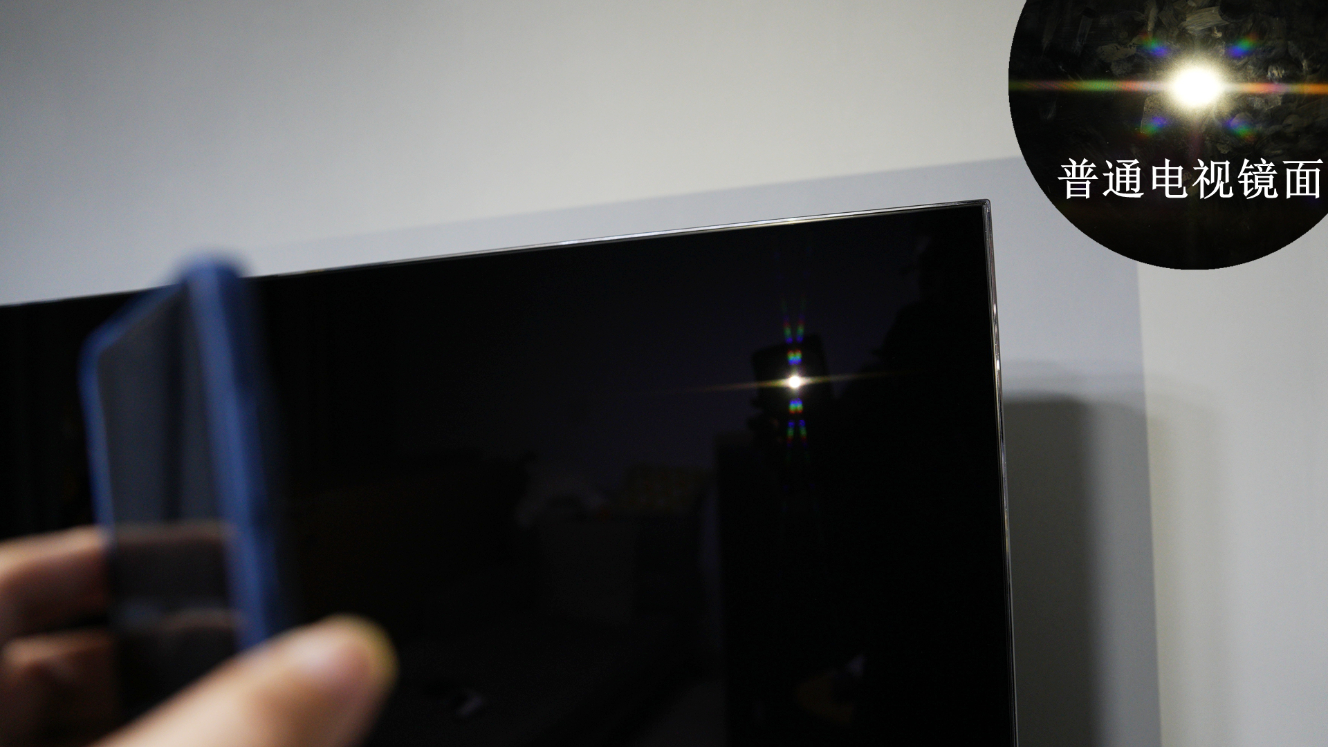 黑曜屏 Ultra表面覆盖双层 LR 低反膜,反射率低至 1.28%(业内顶尖),在强光环境下仍能保持纯净的画面表现,比如下面我实测,75E8Q Pro反光亮点极小,是我目前测到过最小的。