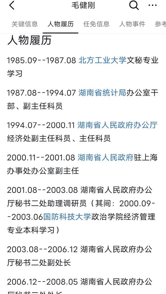 也就是说湖南省委巡视组组长毛健刚落马被查。这一次被查的这一个“内鬼”毛健刚,今年58岁,大学学历,本科毕业于国防科技大学政治学院经济管理专业,学历非常高,这是一所军校来的。