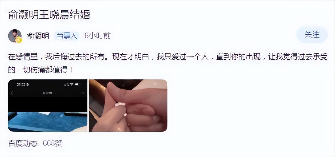 三、现任王晓晨躺枪:低调恋爱一年修成正果在这场舆论风暴中,新娘王晓晨堪称“最惨躺枪者”。她与俞灏明2022年因戏生情,去年晒拥抱照官宣恋情,今年情人节还po出结婚证件照,藏头诗暗藏“晨明”CP名,甜蜜满满。