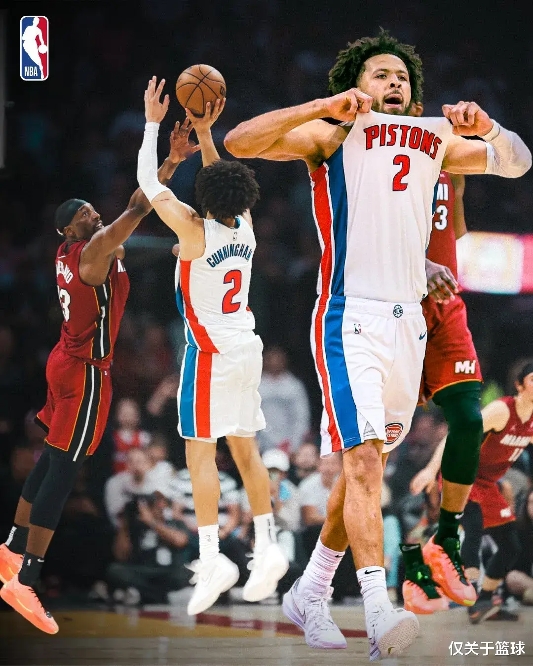 在坎宁安绝杀热火之前,还有这样一条故事线。去年的3月18日,活塞还是坦克队的时期,活塞和热火也是打到了最后。坎宁安三分绝杀偏出,反过来被阿德巴约在弧顶位置命中绝杀三分。