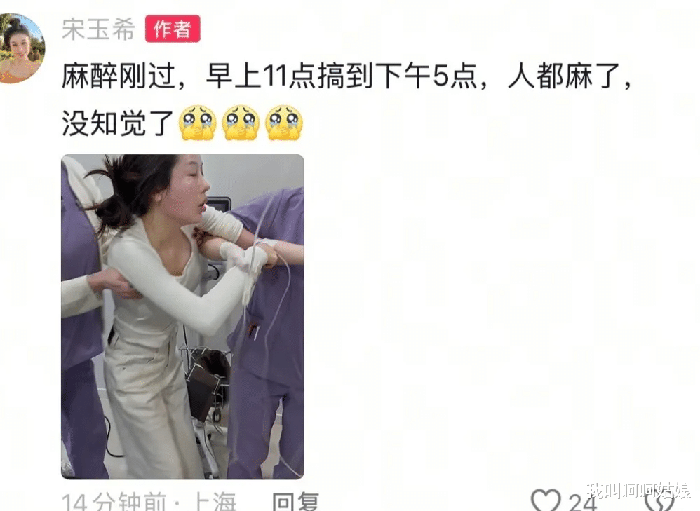 看着宋玉希瘫软如面条的被架出医院,医美老司机都倒吸冷气:“太阳穴填充+卧蚕重塑+嘟嘟唇套餐,6小时根本是生死时速!”但当事人金句频出:“安检不过又怎样?我开心我骄傲! ”这话听着耳熟吗? 像极了当年纹身被爹妈打断扫把,还要倔强发朋友圈的00后。