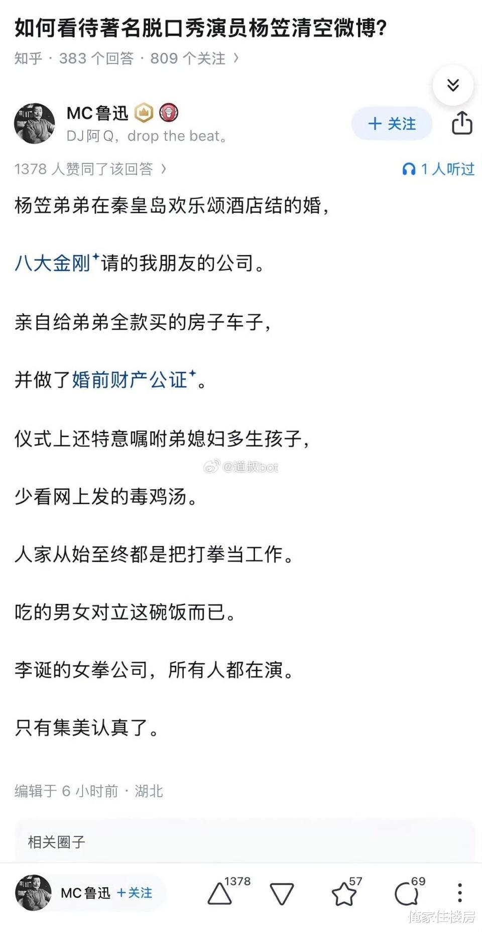 正如网友所说:"我们付费看的是表演,何必计较幕后真实?"在这个面具时代,杨笠只是把角色扮演玩到了极致。