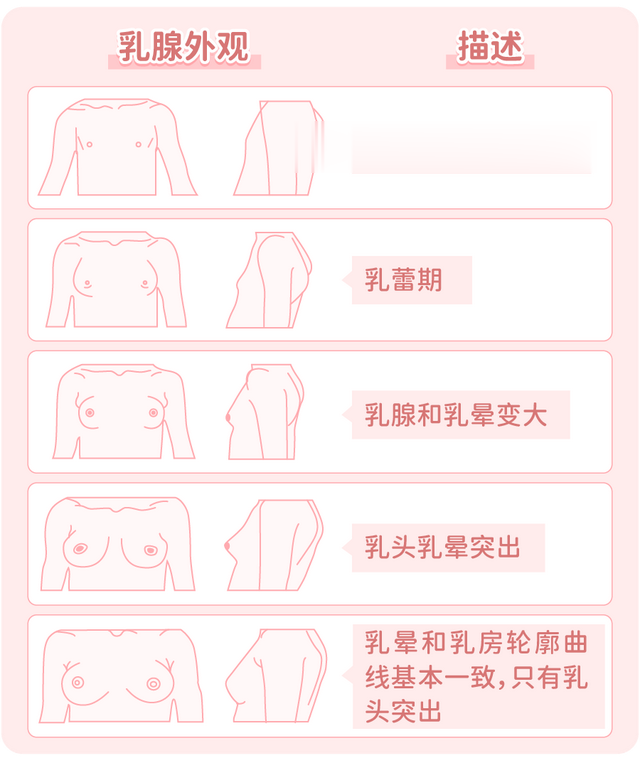 rǔ腺发育的时候,rǔ晕、rǔ头的部位会先凸起来,尖挺挺的,然后逐渐隆起成小山丘状。