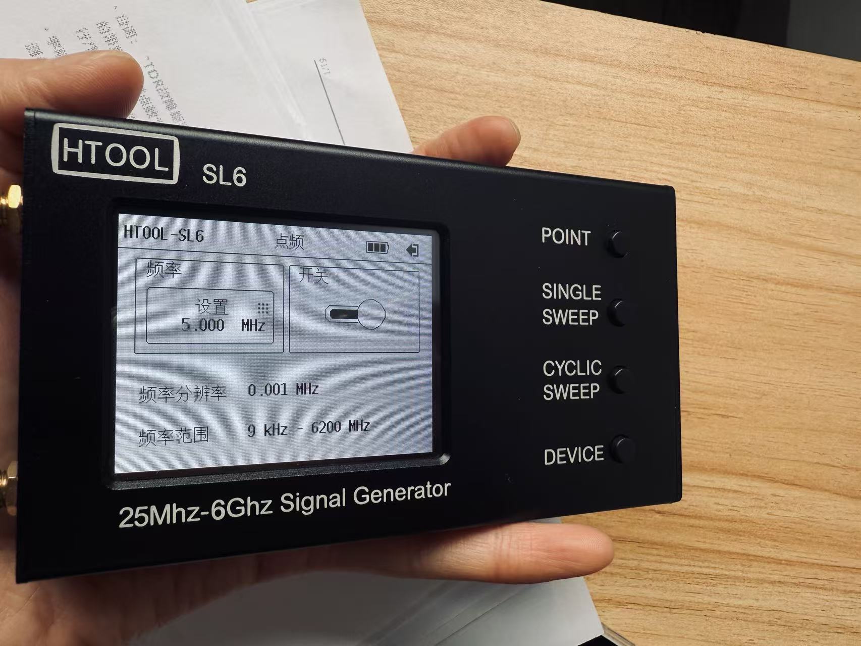 在功能方面,SL6 可产生 9KHz 到 6200MHz 频率的正弦波,覆盖范围广泛,能够满足众多领域的测试需求。CH1 通道覆盖 24MHz 到 6200MHz,CH2 通道覆盖 9KHz 到 6200MHz,双通道设计进一步增强了其应用灵活性。不仅如此,SL6 还支持扫频功能,分为单次扫频和循环扫频,用户通过设置开始频率、结束频率、时间、步长等参数,就能轻松完成扫频测试,这对于分析电路的频率响应特性极为有用。