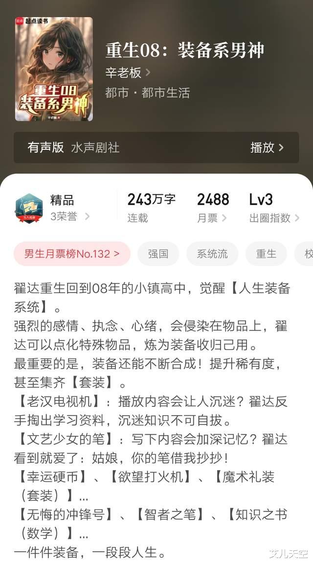 2、《重生08:装备系男神》243万字完本
