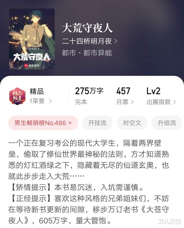 这本新书写了不到半年,也有三千精品线以上的成绩,看作者总结,后面节奏乱了最终加快结束了。