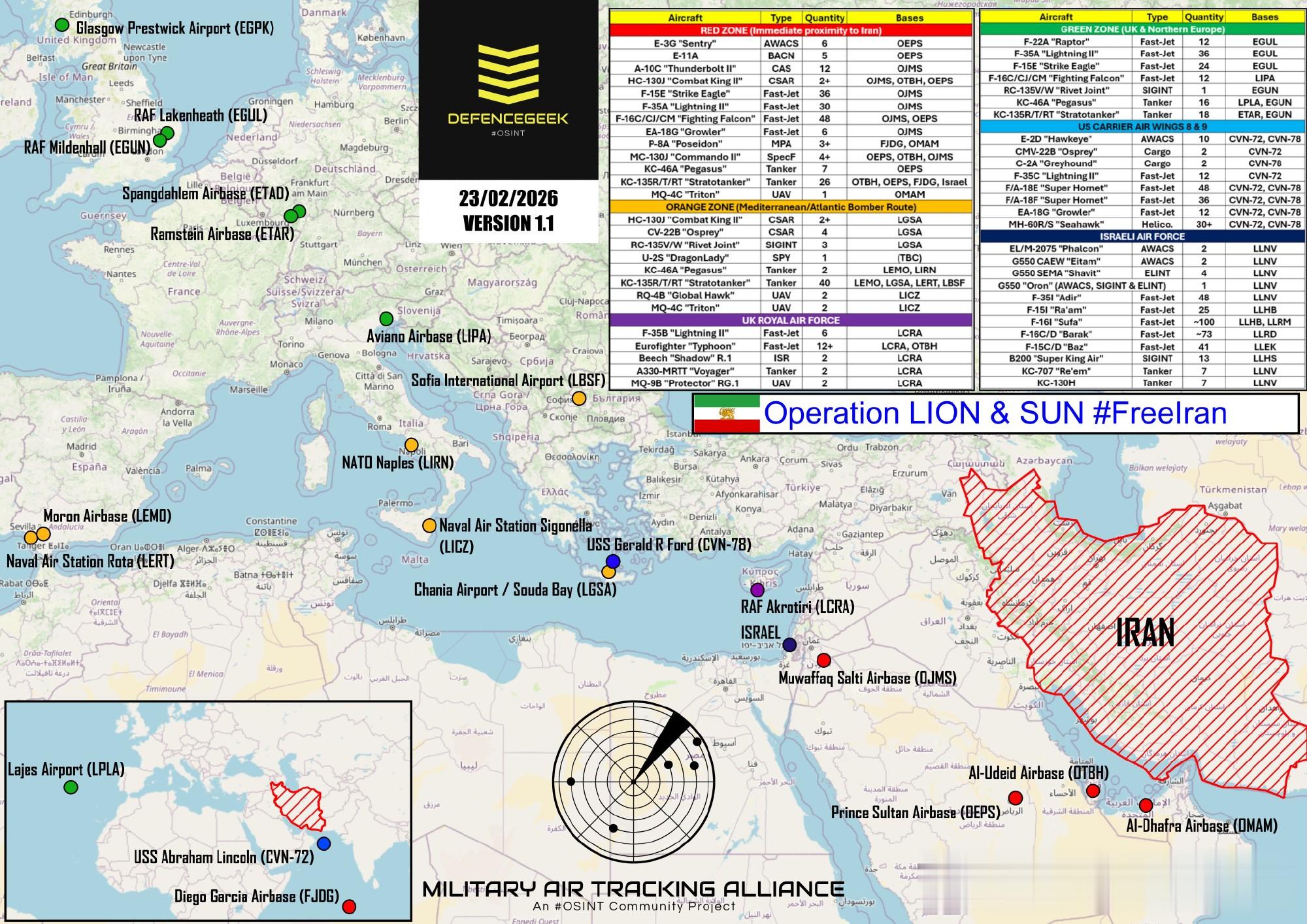 海军方面,美国则部署了两个航母战斗群,“林肯”号早就已经部署就位,编队内拥有8艘阿利·伯克级驱逐舰、3艘濒海战斗舰,以及1艘“俄亥俄”级核潜艇。拥有36架F/A-18E/F、12架F-35C舰载战斗机,以及多达726个垂直发射单元,还有数百枚“战斧”巡航导弹。“福特”号航母战斗群还在路上,不过带了7艘阿利·伯克级驱逐舰,以及48架F/A-18E/F舰载战斗机,综合实力接近“林肯”号航母战斗群。