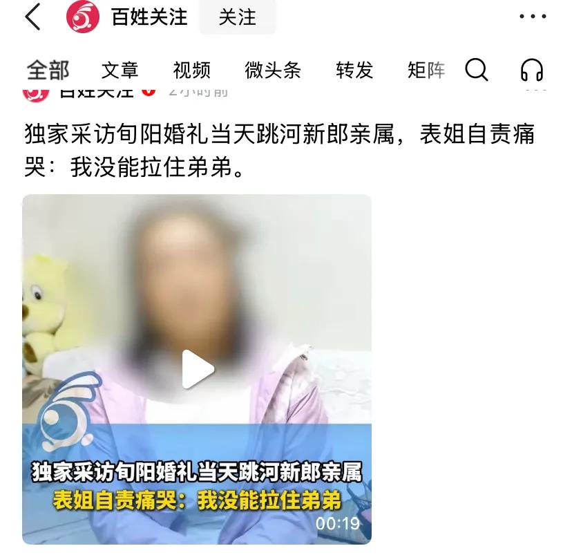 【独家采访旬阳婚礼当天跳河新郎亲属,表姐哽咽回忆事发经过:弟弟一路遭新娘...】