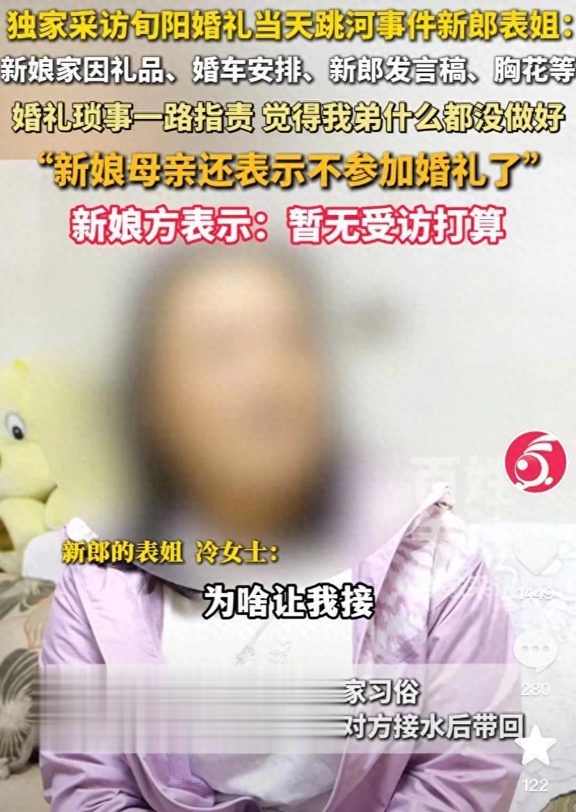 【独家采访旬阳婚礼当天跳河事件新郎表姐:新娘家因礼品、婚车安排、新郎发言...】