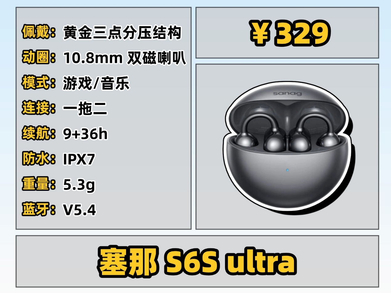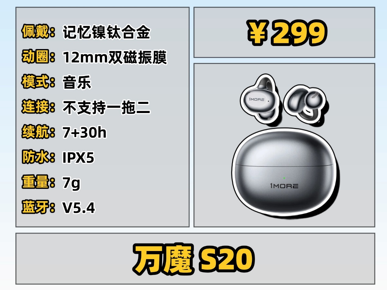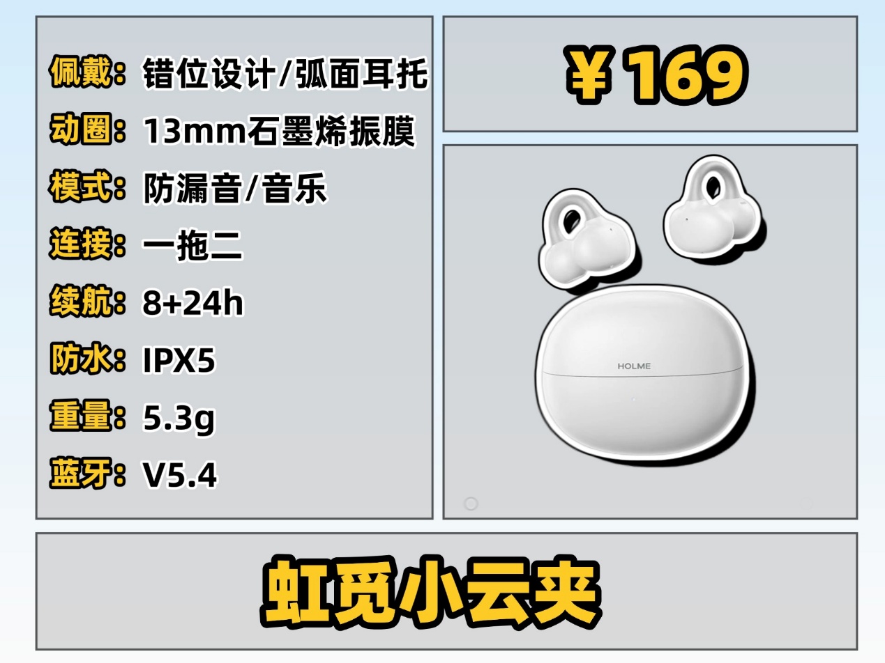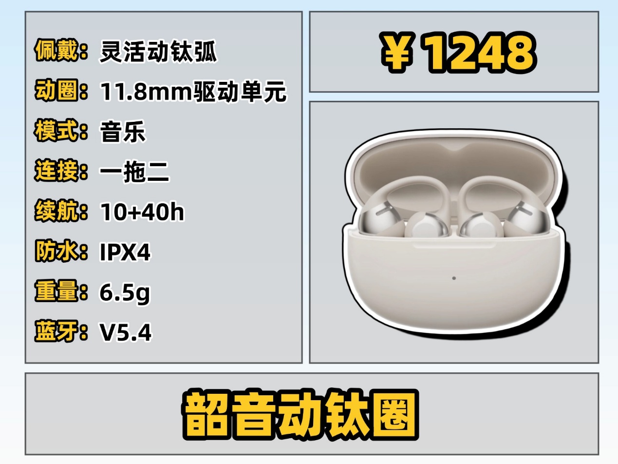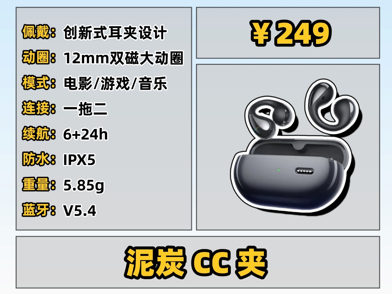 这类耳机主打佩戴体验,采用人体工学设计,耳夹力度适中、重量轻盈,长时间佩戴无压迫感,运动时也不易滑落,适合经常戴耳机、运动爱好者,或者耳朵比较敏感的朋友。