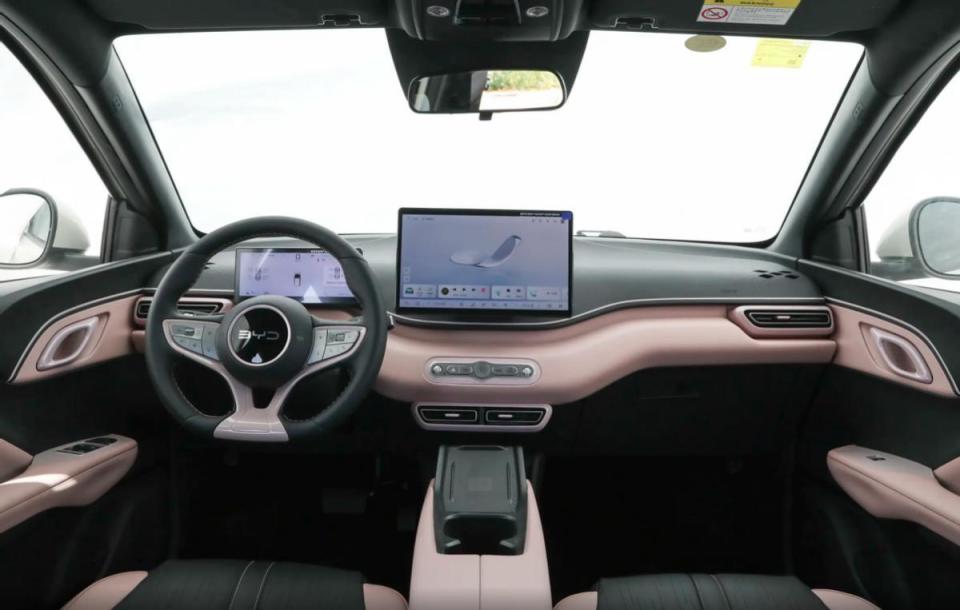 比亚迪海豚 420KM 活力版的中控则是5 英寸仪表 + 10.1 英寸自适应旋转 Pad,DiLink 4.0 生态还算不错,支持手机互联与 4G 网络,它的座椅为仿皮材质,前排带扶手,后排纯平地台,储物空间灵活,但仅 4 扬声器,无座椅加热与无线充电,配置偏基础,而且这个版本仅配备一颗超声波雷达,并没有辅助驾驶功能。