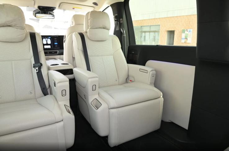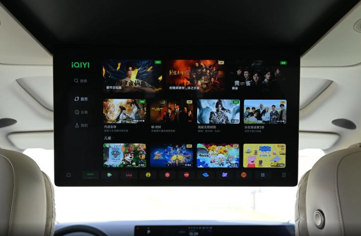 接下来视线重心转移到车内,理想MEGA Home基于长达5米35的车身长度以及3米3的轴距,作为大型MPV来说,其内部纵向空间宽适度是没有任何问题的。也正是基于体量上的优势,新车的后排是此次升级最多的地方。首先后排屏幕从17英寸升级为21.4英寸的3K LCD屏,画面清晰度和显示效果都更舒适。其次,二排配备了预设45°、90°、180°旋转的双头等舱零重力座椅,座椅填充柔软度好于现款车型,同时应用场景更多。而就我个人而言,还是觉得45°角旋转日常更实用,主要方便家里行动不便的老人上下车。