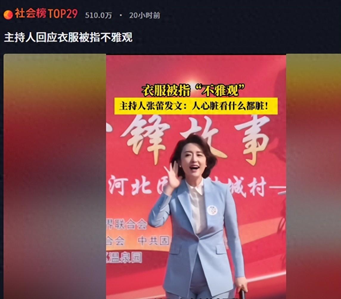 2024年3月7日,河北固安林城村的油菜花田里,45岁的前央视主持人张蕾穿着浅蓝色西装主持志愿活动。她不曾想到,这段本应聚焦公益的视频,会在48小时内演变成一场关于"西装裤是否过紧"的全民审判。当抖音点赞数突破10万时,评论区却涌现出3.2万条"不雅观"的指控,这场看似寻常的着装争议,实则掀开了当代社会集体心理的隐秘褶皱。