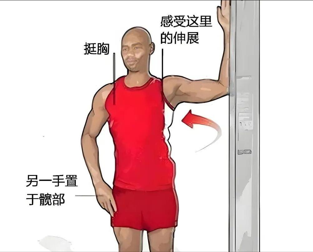 训练后每侧至少拉伸30秒,帮助胸肌放松延展(下图)。★睡眠要求: