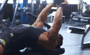 上背贴紧卧推凳,臀部收紧,哑铃缓慢下放至头部后方做深拉伸,手肘保持微屈,拉起时胸大肌上部与前锯肌协同发力。➡训练量: