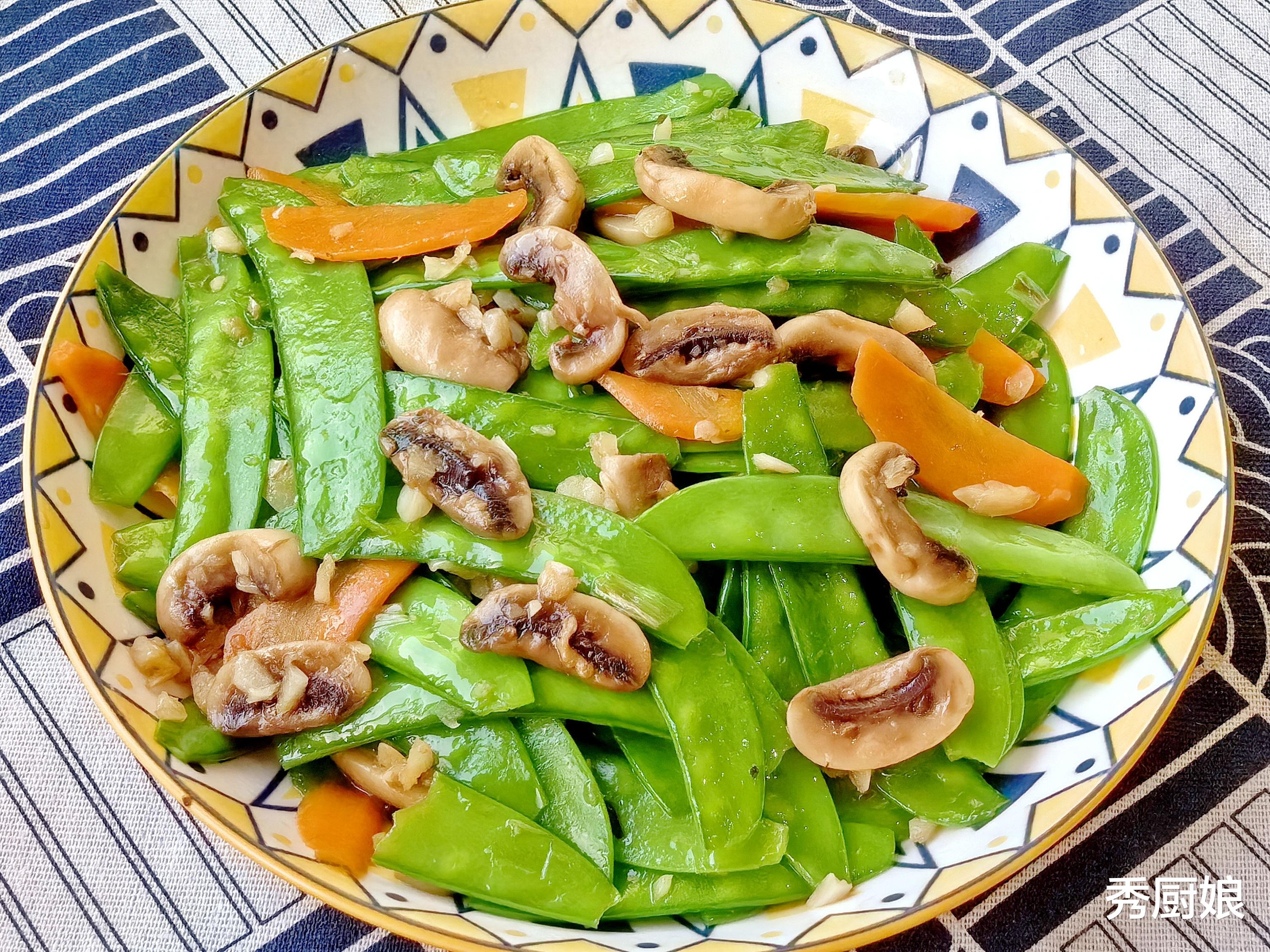 推荐食谱:口蘑胡萝卜炒荷兰豆
