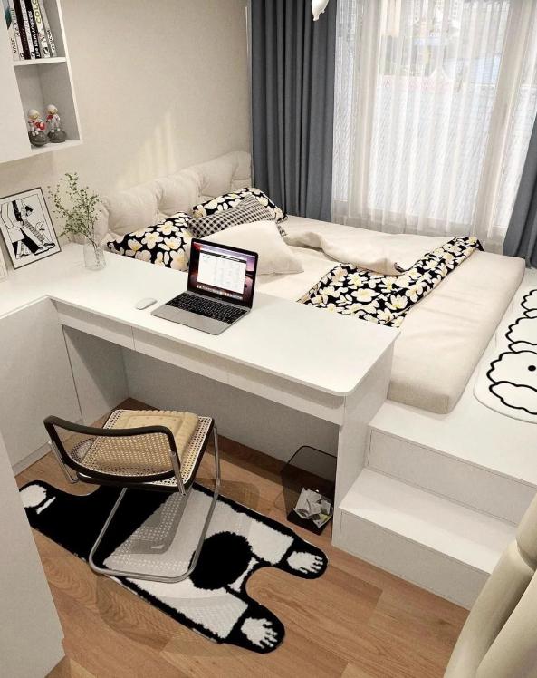 而且,地台床可以根据房间的形状进行定制,无论是狭长的卧室还是不规则的角落空间,地台床都能很好地适应,使整个房间布局更加紧凑合理。