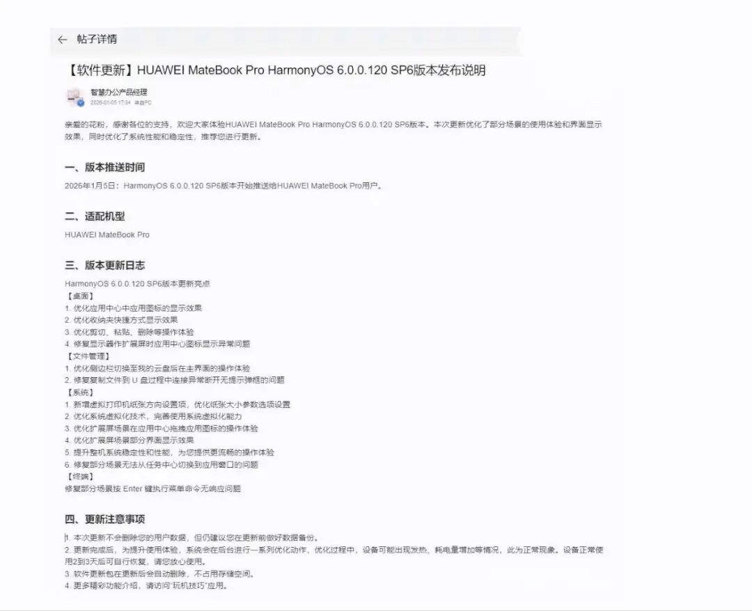 近日,华为MateBook Pro 已通过OpenHarmony 6.0 Release版本的官方兼容性认证,系统版本号为6.0.0.130。这标志着OpenHarmony在主流笔记本电脑平台上的落地取得关键进展,华为自研操作系统生态完成了从移动终端到桌面计算设备的重要延伸。