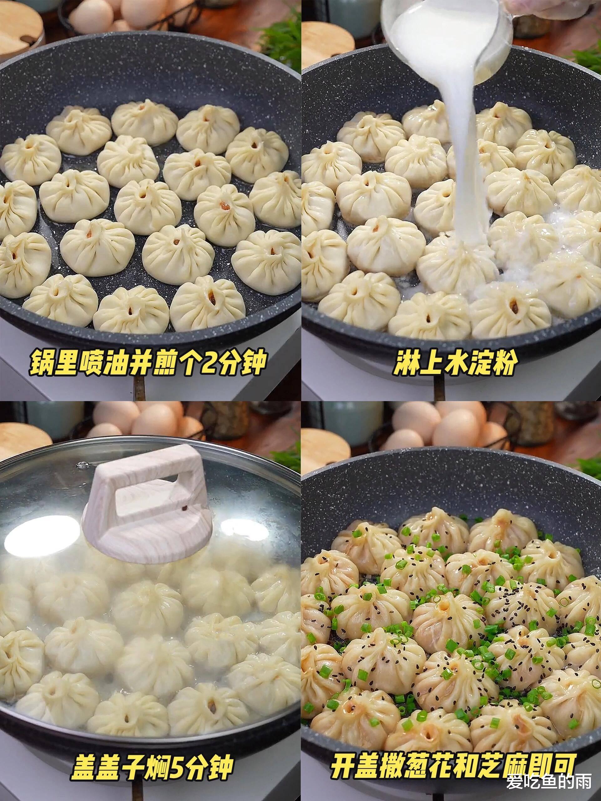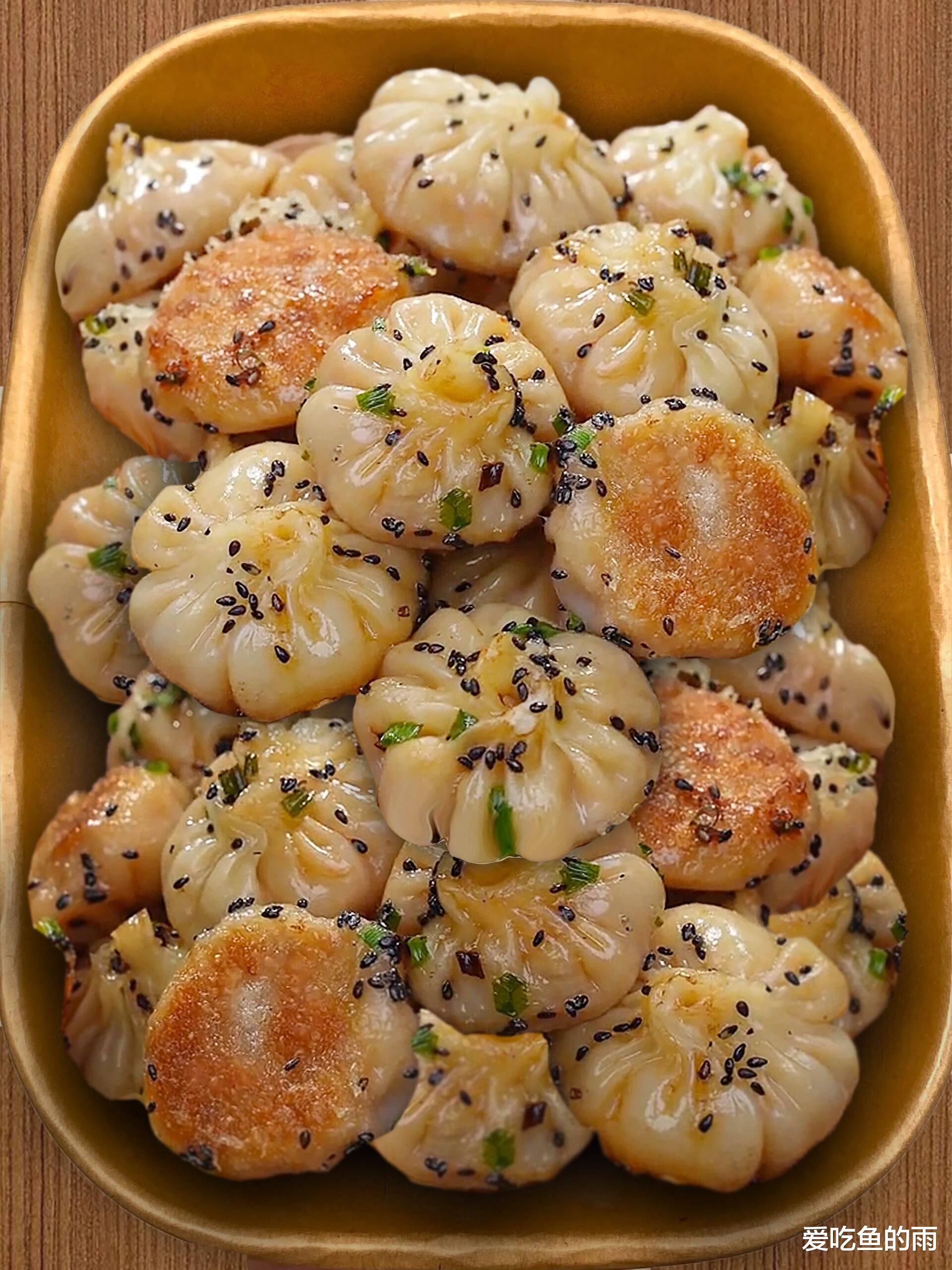 五分钟后,撒上黑芝麻和翠绿葱花,再焖一分钟。开盖的瞬间,香气如烟花般炸开:焦香、肉香、麦香、芝麻香,交织成一首立体的香气交响曲。我外婆做的拇指生煎是一绝。童年时,周末早晨总被厨房的声响唤醒——剁馅的笃笃声、煎锅的滋滋声。她总说:“生煎要趁热吃,等凉了,魂就没了。”我们围在灶边,她铲起刚出锅的生煎放在我们碗里,不忘叮嘱:“先咬一小口,小心烫。”透过蒸腾的热气,是她含笑的眼睛。