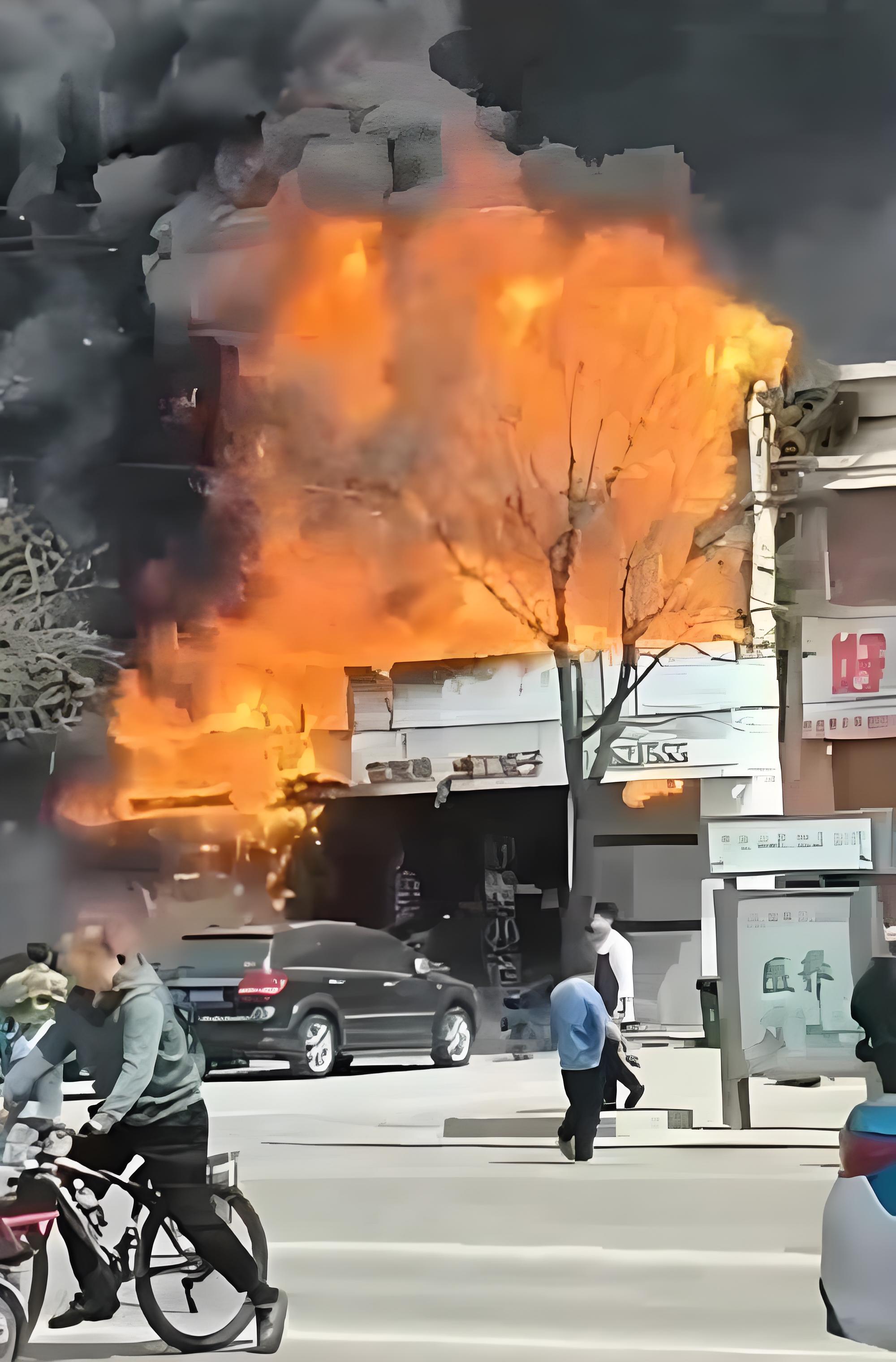"就像煤气罐在耳边炸开。"隔壁五金店老板王建军抄起灭火器冲过去时,二楼窗框正带着火苗往下掉。裹着油烟的黑色浓雾封住楼梯,二十多桌宴席的宾客在尖叫声中乱撞。有人把红酒浇在窗帘上当逃生绳,玻璃渣混着血滴在消防车顶棚上叮当响。