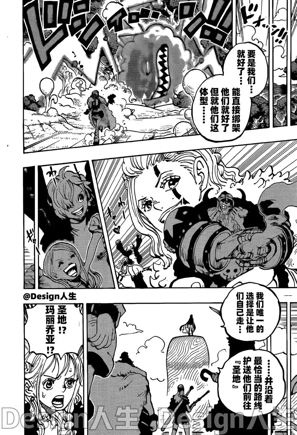 麒麟戈姆圣击败了校长,安吉老师也无法动弹,他找到了一个巨大的电话虫,原来这里是一个联络站,老师可以跟巨人族战士通话。索玛兹圣击败了萨乌罗,他以为萨乌罗在奥哈拉事件死了,没想到他还活着。罗宾和乔巴都没有出手,他们躲在萨乌罗的头发里面,索玛兹圣很恼怒,前国王毁了巨人族和天龙人的合作,下周不休刊。
