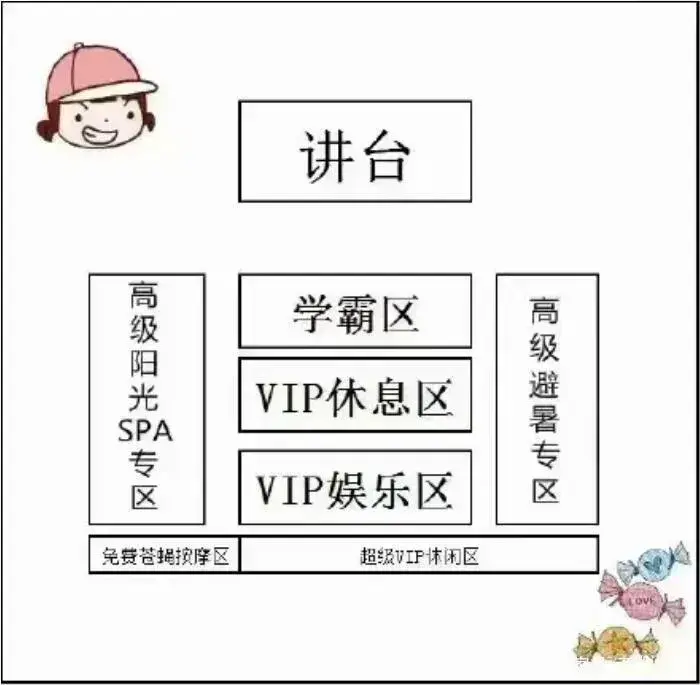 当然,对于那些特别调皮的同学,老师会把他们安排在自己能看到的地方,这样可以随时关注他们的学习情况。虽然按成绩划分座位不太好,但还是有极个别老师会这么做,我觉得这种做法不利于同学们的心理健康。