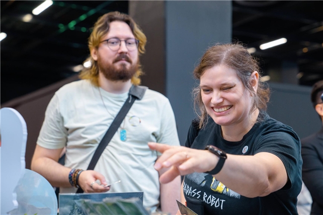 展台布置同样颇具巧思。《山外山》以青绿色为主色调,延续并呼应了首支2D PV中的东方奇幻美学。整体设计既展示了游戏独特的美术风格,也凸显出布景与游戏本身的氛围的高度契合,让试玩区成为展会现场一道独特的风景线。