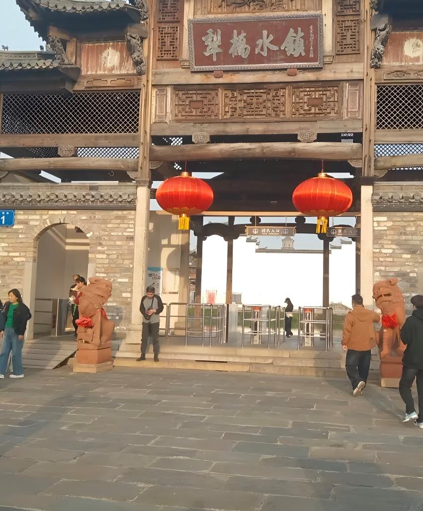 高大的牌匾上清晰刻着字迹,水镇,这里主打水乡,但是也有其他游玩的地方哦,古建筑,古宅,可以品尝美食,等等,这里除了自然风光和人文建筑,犁桥水镇景区还拥有多样的民俗文化活动,那就是小编刚才说的,每逢节假日,景区里面有民俗表演了。