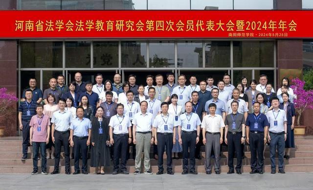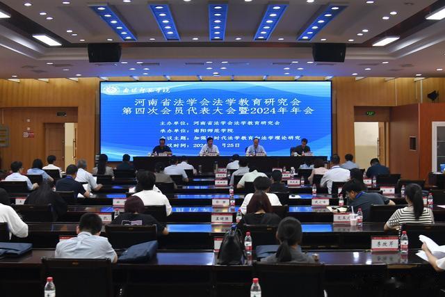 直播南阳讯(张秀芹/文 胡新悦/图)5月25日,河南省法学会法学教育研究会第四次会员代表大会暨2024年年会在南阳师范学院召开。大会由河南省法学会法学教育研究会主办、南阳师范学院承办。省委政法委二级巡视员、省法学会党组成员、秘书长王子勇,河南警察学院党委委员、副院长、省法学教育研究会副会长兼秘书长袁经义,省法学会研究部主任赵明星,河南省法学会法学教育研究会第三届会长、南阳师范学院党委书记张宝锋,南阳师范学院副校长王岩出席会议。省内20余所高等院校法学院系相关负责同志、专家代表160余人参加。