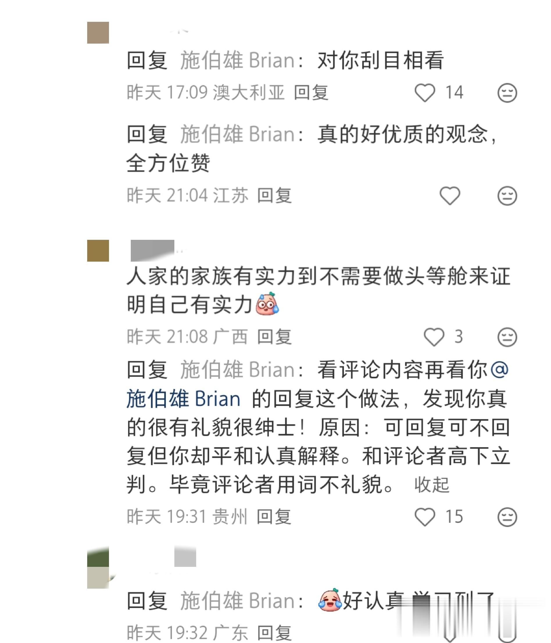 话说回来,施伯雄这礼貌淡定的回应,特别拉好感,价值观也是被赞了,不少网友表示学习到了,富人思维果然不一样。