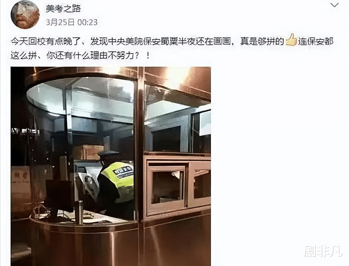 他成功摆脱了保安的身份,正式成为了一名央美的学生。