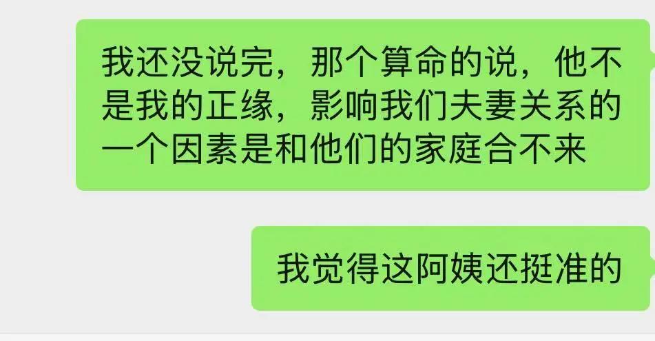 前段时间,一位朋友推荐我去算命。当我把自己和丈夫的生辰八字发过去,对方回:“你命中两段婚姻,他不是你的正缘。”