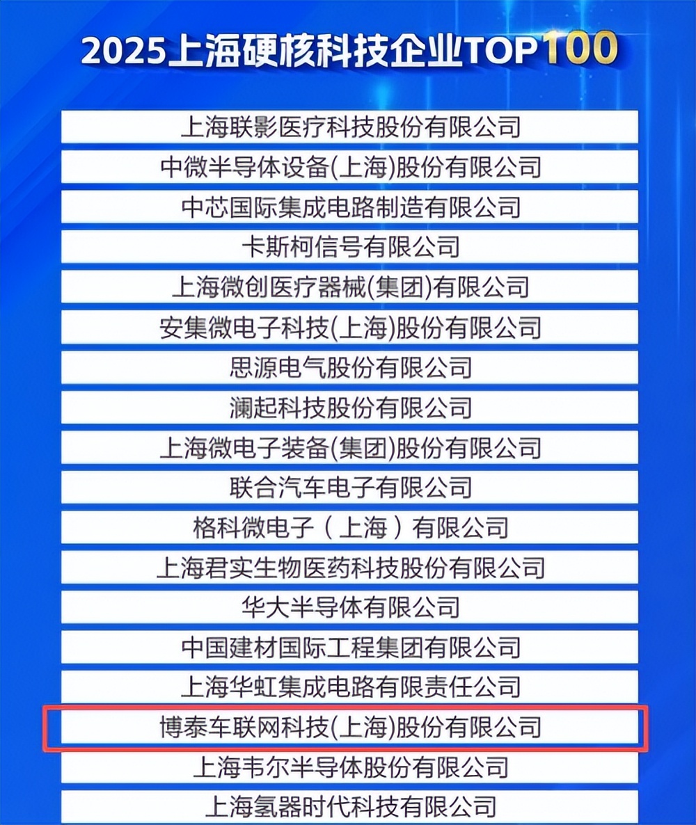 在众多传统硬核科技巨头之中,来自智能汽车赛道的新兴力量同样值得关注。博泰车联网科技(上海)股份有限公司凭借其在智能座舱与车联网领域的系统性创新能力,以第16名的成绩入选榜单,成为汽车智能化领域硬核科技企业的代表。