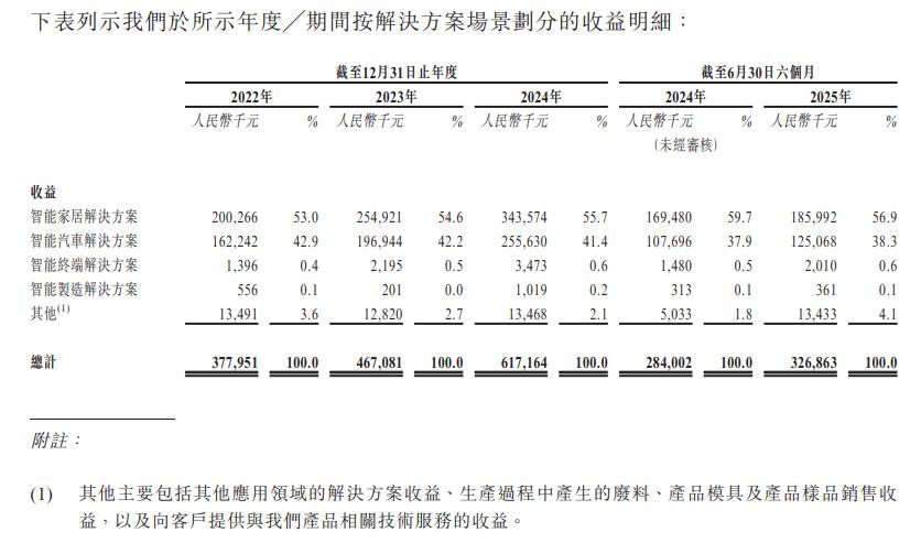 从营收占比上看,202-2024年及2024年1-6月、2025年1-6月智能家居解决方案营收占比为53%、54.6%、55.7%及49.7%、56.9%,为奥迪威第一营收场景。