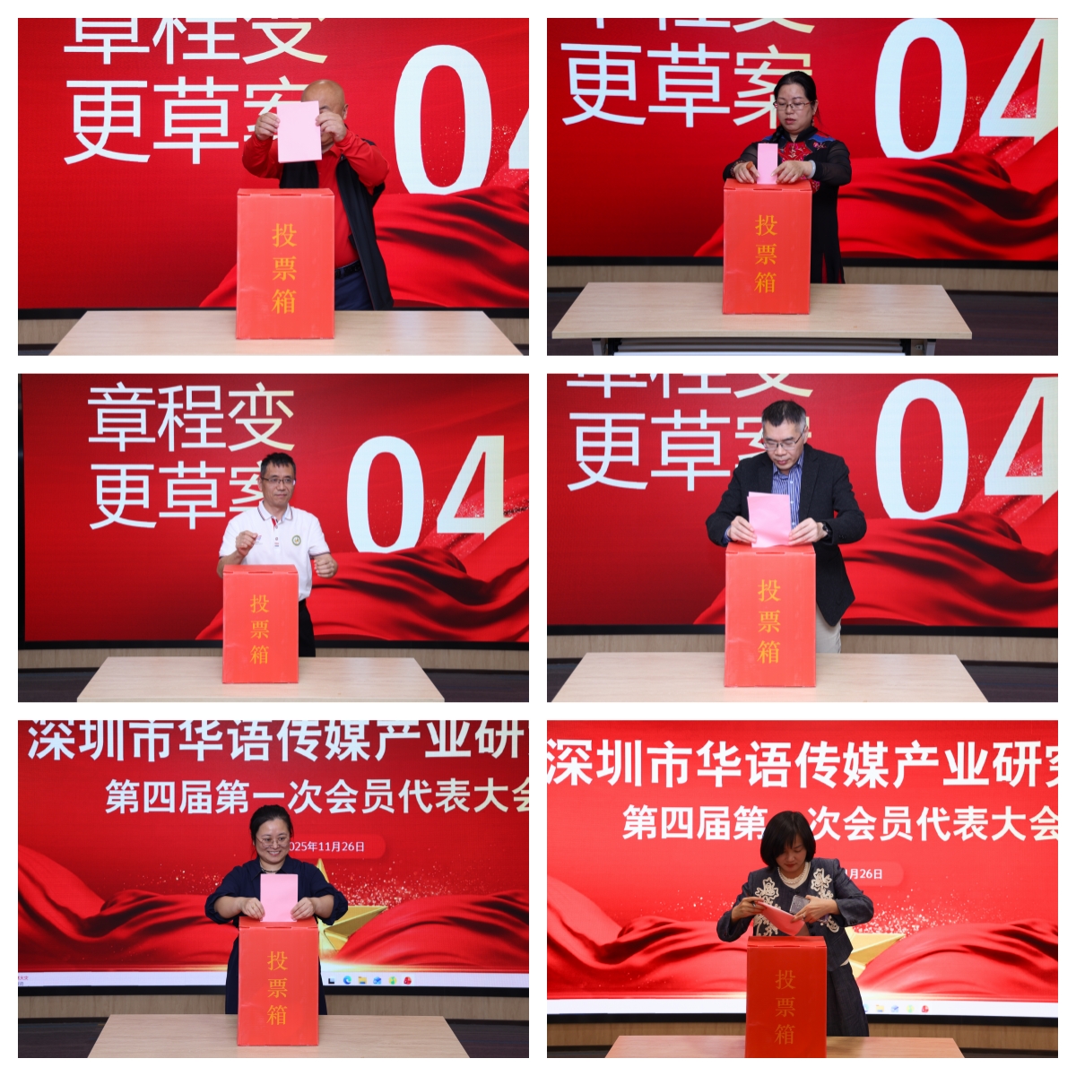 2025 年 11 月 26 日下午,深圳市华语传媒产业研究会第四届第一次会员代表大会于南山区三航科技大厦 6 楼公字厅盛大启幕。本次会议由胥苗龙主持,众多行业领导与会员代表齐聚一堂,共襄盛会,见证这一具有里程碑意义的重要时刻。