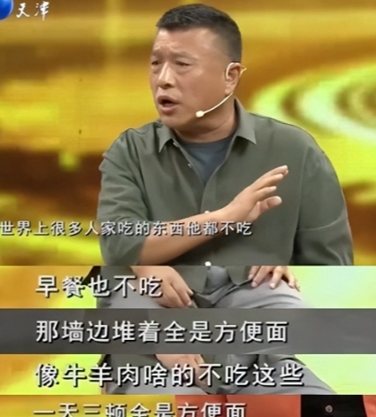 二十多年的老友康洪雷也说,【他极其挑食,正常人喜欢的菜和肉,他基本都不吃,只要进组就一日三餐吃方便面。】
