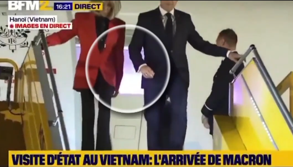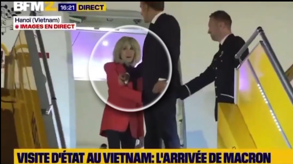 2025年5月25日,法国总统马克龙和夫人布丽吉特在越南河内机场的一幕,意外引爆了全球舆论。美联社镜头捕捉到:当专机舱门打开,布丽吉特突然抬起双手,用力推开了丈夫的脸,马克龙被推得后退一步,随即侧头向镜头挥手。这个瞬间被广泛传播,迅速成为焦点。